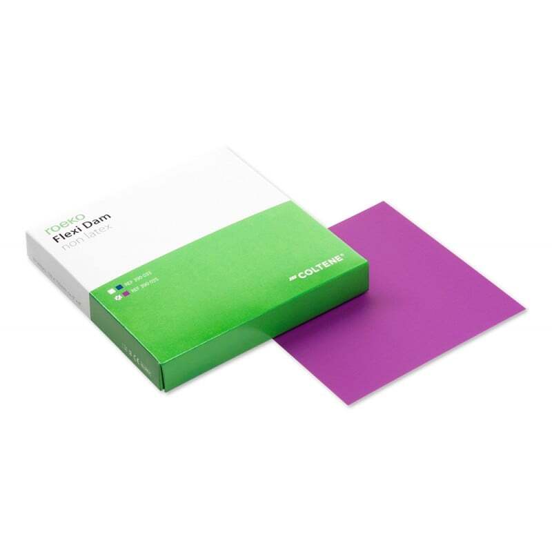 Flexi Dam non latex está fabricado con un material de alta calidad con características excepcionales. Flexi Dam sin látex es fácil de usar y garantiza un control óptimo de la humedad. El material altamente elástico se contrae estrechamente alrededor del diente para un aislamiento efectivo. Violet Flexi Dam evita la confusión con los diques de látex. Blue Flexi Dam proporciona un buen contraste con el área de tratamiento y tiene un efecto relajante para el médico.