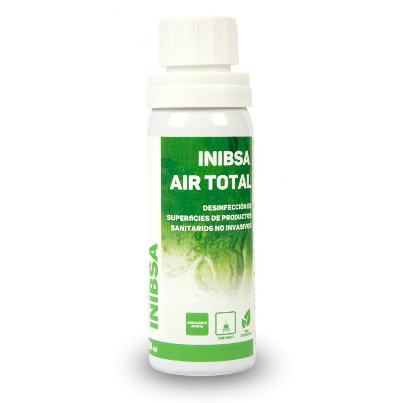 INIBSA AIR TOTAL es un desinfectante destinado a reducir la carga microbiológica existente en el ambiente. Su válvula one-shot distribuye el producto por el espacio mediante nebulización, consiguiendo así un reparto uniforme (hasta en zonas de difícil acceso) y ayudando a obtener un box lo más aséptico posible.