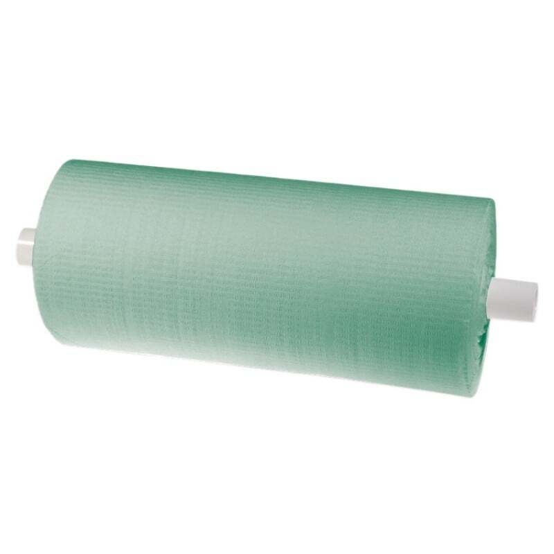 Descripción de BABERO ROLLO PAPEL/PLASTICO VERDE 80 uds