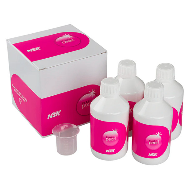 Flash Pearl Sand de NSK permite una limpieza dental suave y muy eficaz. La forma esférica de las partículas de polvo con un tamaño medio de 54 µm, formada a base de calcio, garantiza la eliminación segura de placa, decoloración y placa, sin dejar de ser segura para los tejidos blandos y los dientes. Además, el calcio no forma una masa aglomerante que pueda obstruir la boquilla.