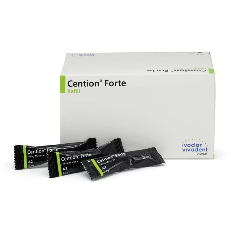 Cention Forte es un material de obturación radiopaco y autopolimerizable para procedimientos de restauración directos en el sector anterior y posterior. Dado su protocolo de aplicación reducido, su alta resistencia a la flexión y su estética natural, Cention Forte se considera mejor alternativa a la amalgama que los ionómeros de vidrio. El relleno alcalino del material libera iones bioactivos de calcio, flúor e hidróxido. Esto evita la desmineralización y favorece la remineralización. La liberación de iones a un valor de pH ácido es considerablemente más alta que a un valor de pH neutro. Esto permite una neutralización más rápida de un ataque ácido.