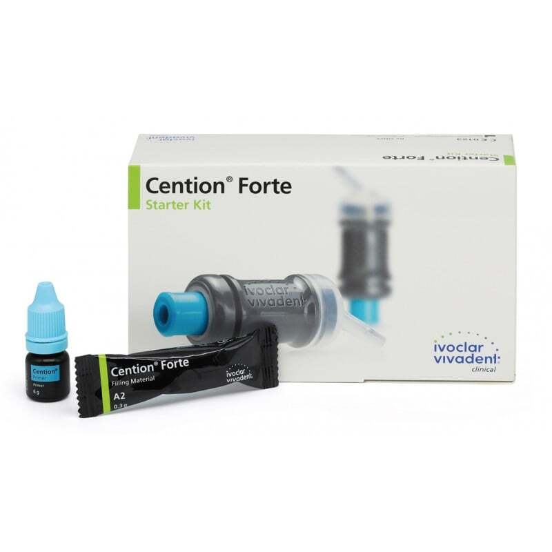 Cention Forte es un material de obturación radiopaco y autopolimerizable para procedimientos de restauración directos en el sector anterior y posterior. Dado su protocolo de aplicación reducido, su alta resistencia a la flexión y su estética natural, Cention Forte se considera mejor alternativa a la amalgama que los ionómeros de vidrio. El relleno alcalino del material libera iones bioactivos de calcio, flúor e hidróxido. Esto evita la desmineralización y favorece la remineralización. La liberación de iones a un valor de pH ácido es considerablemente más alta que a un valor de pH neutro. Esto permite una neutralización más rápida de un ataque ácido.