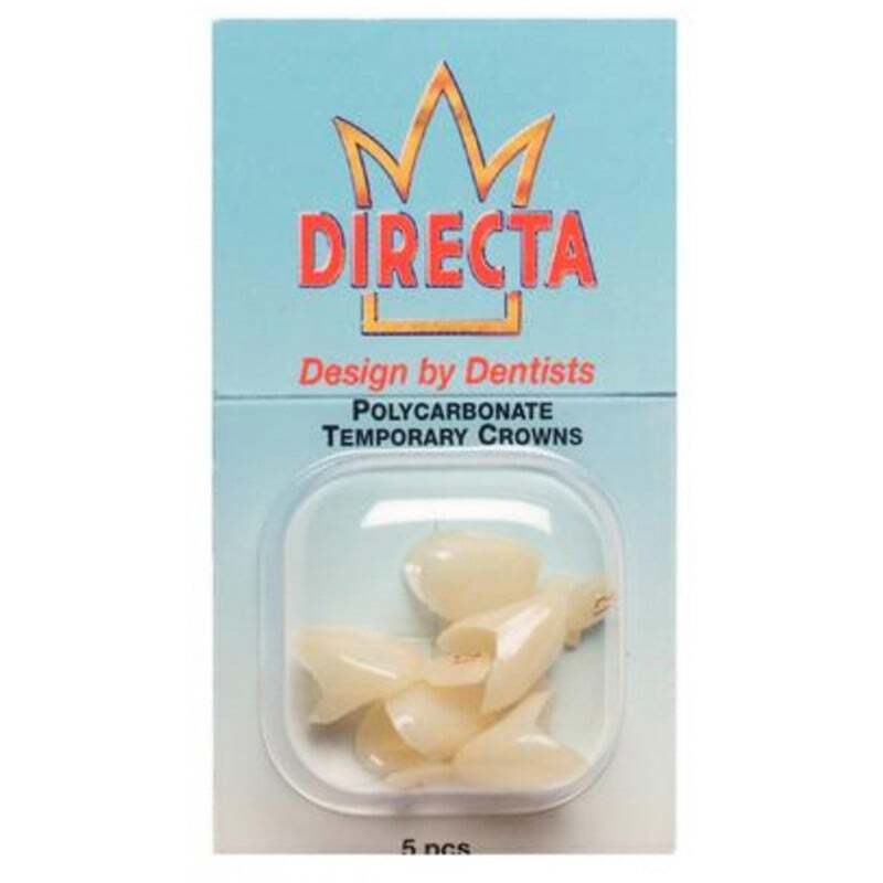 Coronas prefabricadas de resina de policarbonato con microfibras de vidrio para uso provisional o prolongado en dientes anteriores de adultos.