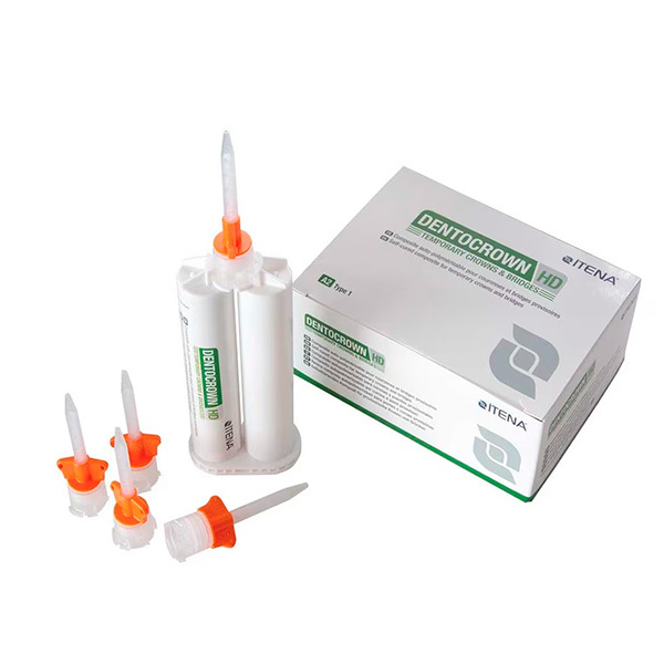 Material para la confección de coronas y puentes provisionales a base de resina, indicado para la realización directa en clínica. DENTOCROWN HD está formulado para ofrecer provisionales resistentes, estables y con buen acabado superficial durante todo el periodo temporal del tratamiento.