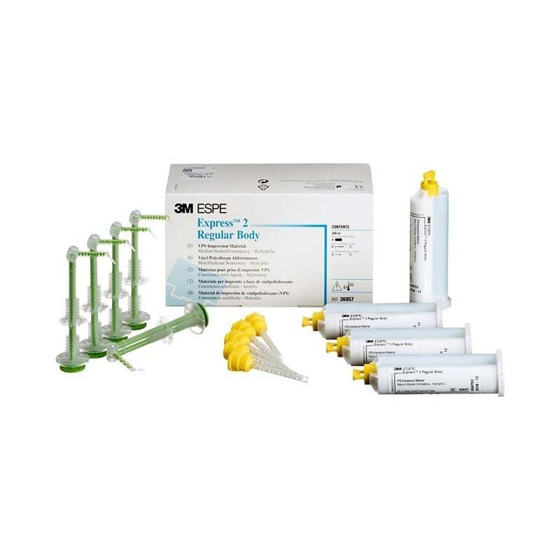 Contenido: - 4 cartuchos Express™ 2 Regular Body de 50 ml- 10 puntas de mezcla Garant™ amarillas- 5 Jeringas