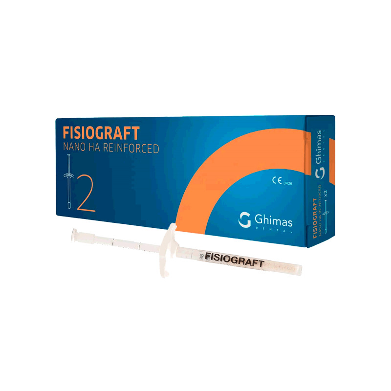 - FISIOGRAFT nano-H.A. reforzado es una mezcla granular almacenada dentro de una jeringa que permite aplicar el producto directamente en el defecto óseo
