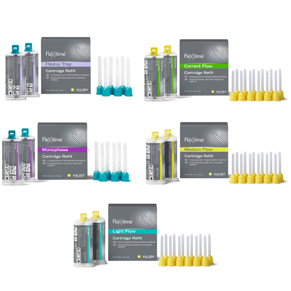 - Flexitime Heavy Tray: material de auto-mezcla para cubetas, consistencia tipo masilla (Putty), alta dureza final.