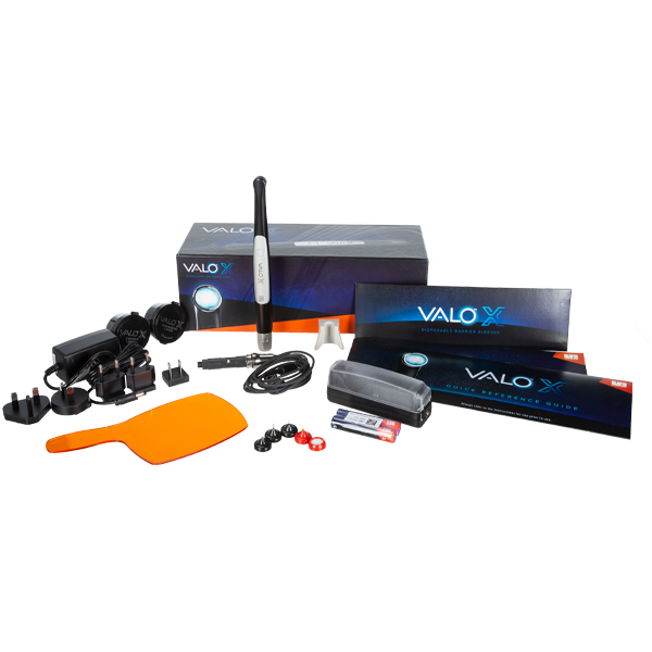 La lámpara de polimerización VALO X ha sido diseñada desde cero para brindarle la durabilidad, potencia, accesibilidad y versatilidad que necesita. Su construcción de aluminio de grado aeroespacial brinda una durabilidad extrema, mientras que el diseño de varilla ergonómico, compacto y de bajo perfil brinda un acceso óptimo a todas las regiones de la boca sin comprometer la comodidad ni para el paciente ni para el médico. Con la lámpara de polimerización VALO X puede contar con una polimerización más completa gracias a su lente de 12,5 mm y su potente chip LED personalizado que ofrece una mayor profundidad de polimerización y colimación del haz con una mejor gestión térmica que otras luces. La lámpara de polimerización VALO X está equipada con dos modos de potencia (modos de potencia estándar y potencia extra), dos modos de ayuda de diagnóstico (modos de ayuda de diagnóstico de luz negra y luz blanca) y la capacidad de trabajar con o sin cable. Su diseño simplificado permite la activación con un solo botón y su función de acelerómetro le permite alternar entre sus modos de ayuda de diagnóstico y encendido con un simple movimiento de la varita. Esto elimina las torpes torpezas durante un procedimiento, reduce la probabilidad de dejar caer el instrumento y le ayuda a concentrarse en la tarea que tiene entre manos. Con cada lámpara se incluyen cinco lentes accesorias, lo que mejora aún más la versatilidad de su lámpara de polimerización VALO X. Además, cada lámpara de polimerización VALO X está cubierta por nuestra garantía de fabricante de 5 años para que pueda estar seguro de su inversión.