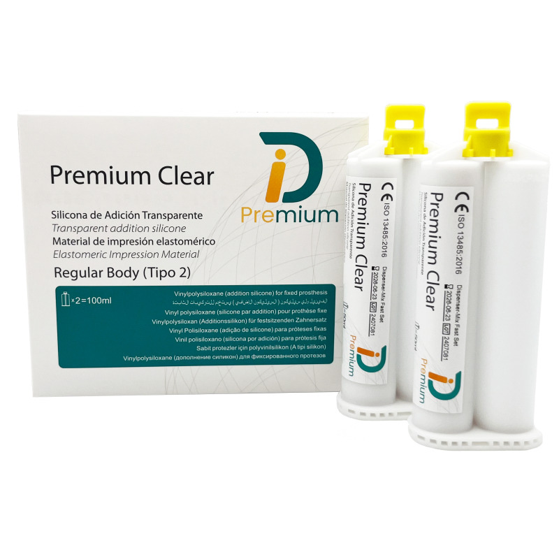 Premium Clear Regular Body Transparant es la silicona de adición recomendada para la construcción de matrices de alta transparencia que permite resolver múltiples imperfecciones. Ahorra tiempo de operación clínica y tiene excelentes resultados estéticos.