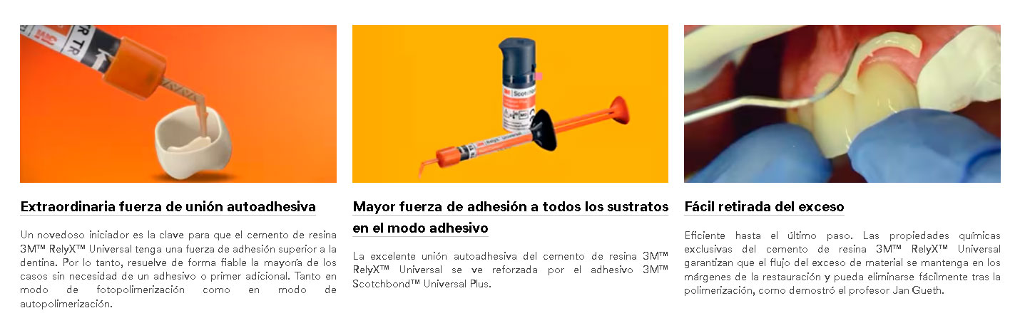 Descubre la eficiencia y la impresionante fuerza de adhesión del cemento de resina 3M™ RelyX™ Universal. Explora esta recopilación de casos clínicos y comprueba cómo un cemento verdaderamente universal puede simplificar tu trabajo diario y ayudarte a abordar prácticamente cualquier indicación adhesiva o autoadhesiva con total confianza.