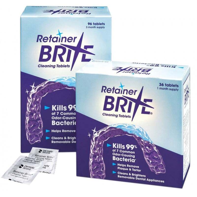 Las pastas dentales abrasivas pueden opacar y decolorar los alineadores y retenedores transparentes. Las tabletas de limpieza Retainer Brite® están especialmente formuladas para ayudar a proteger los aparatos removibles al preservar la claridad y la limpieza.