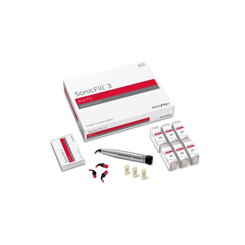 - 1 Pieza de mano Sonicfill- 60 Unidosis (10 A1, 40 A2 y 10 A3)- 1 Kit de prueba con 3 unidosis y 3 modelos