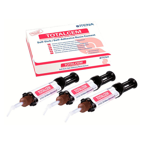 Cemento resinoso autoadhesivo de curado dual indicado para la cementación definitiva de restauraciones indirectas. TOTALCEM AUTOMIX permite un procedimiento de cementación sencillo y fiable, sin necesidad de grabado ni aplicación previa de adhesivo.
