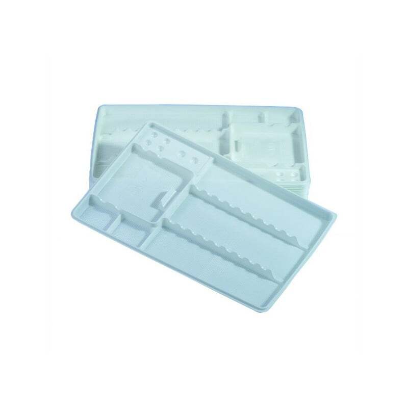 - Tray monouso LIGHT TRAY es una práctica y ligera bandeja realizada en plástico atóxico con compartimentos para piezas de mano, instrumental, etc.