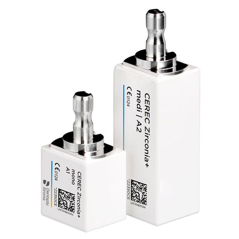 - El bloque CEREC Zirconia+ CAD/CAM para CEREC e inLab es un material que se puede utilizar para la fabricación de coronas y puentes totalmente anatómicos en la región anterior y posterior mediante un procedimiento CAD/CAM