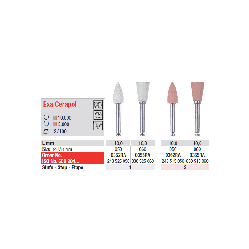 - Sistema de acabamento e polimento bifásico, para todas as restaurações cerâmicas e restaurações com coroas parciais e completas
