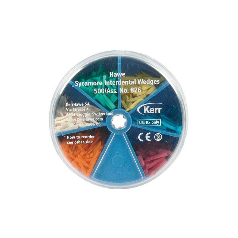 Hawe Sycamore Interdental Wedges son cuñas que separan los dientes y previenen el desplazamiento de la matriz, preservando los contornos anatómicos de los dientes y tejidos de las áreas interproximales.