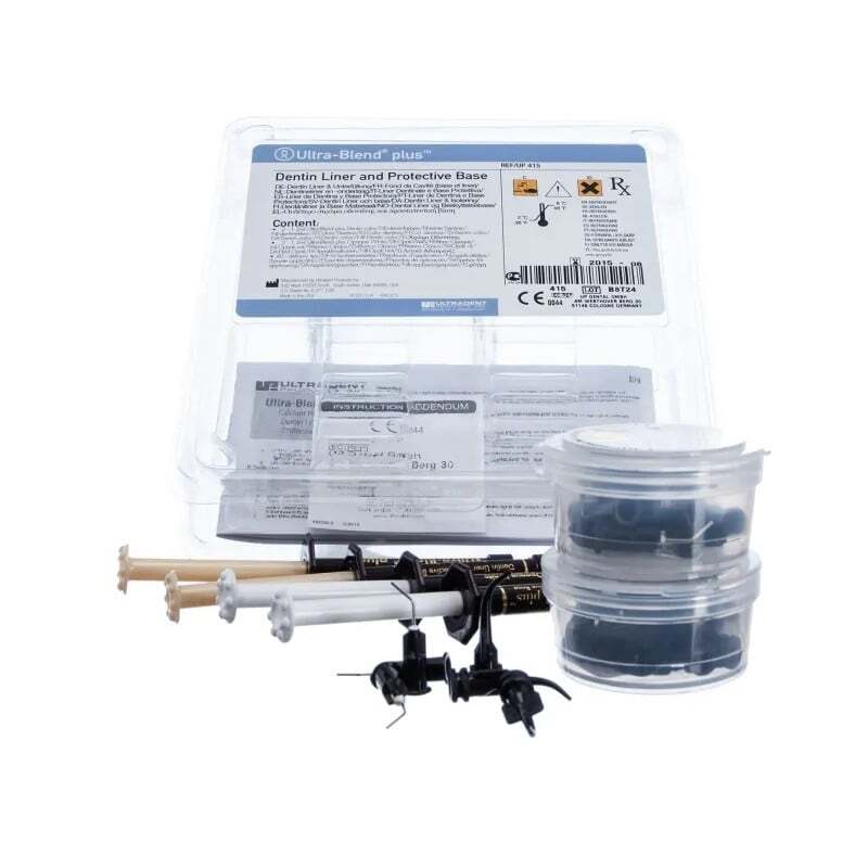 Conteúdo:  - 2 Jeringas de 1,2 ml (1,64 g) Ultra-Blend plus Dentin- 2 Jeringas de 1,2 ml (1,64 g) Ultra-Blend plus Opaque White- 20 Puntas Black Micro- 20 Puntas Black Mini