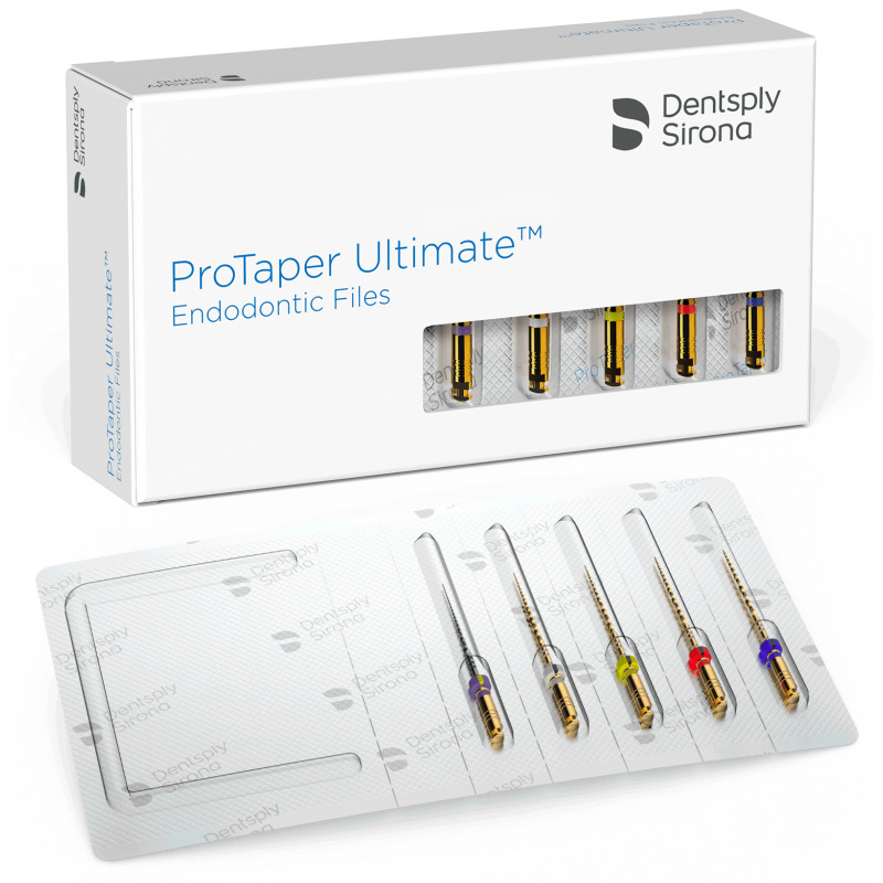ProTaper Ultimate: uma solução para tratamento do canal radicular que combina a última geração de limas ProTaper NiTi, uma desinfecção melhorada e um obturador específico que funcionam juntos perfeitamente. As lâminas rotativas ProTaper Ultimate são projetadas para criar uma forma profunda, otimizada para as seguintes etapas de tratamento: 1 sequência de deslizador-formador-terminadores para cobrir uma gama completa de situações anatômicas.