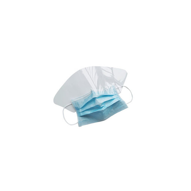 - A máscara com visor superior da Omnia cobre todo o rosto e apresenta uma máscara de 3 camadas com tiras elásticas anti-alérgicas e visor superior anti-salpico