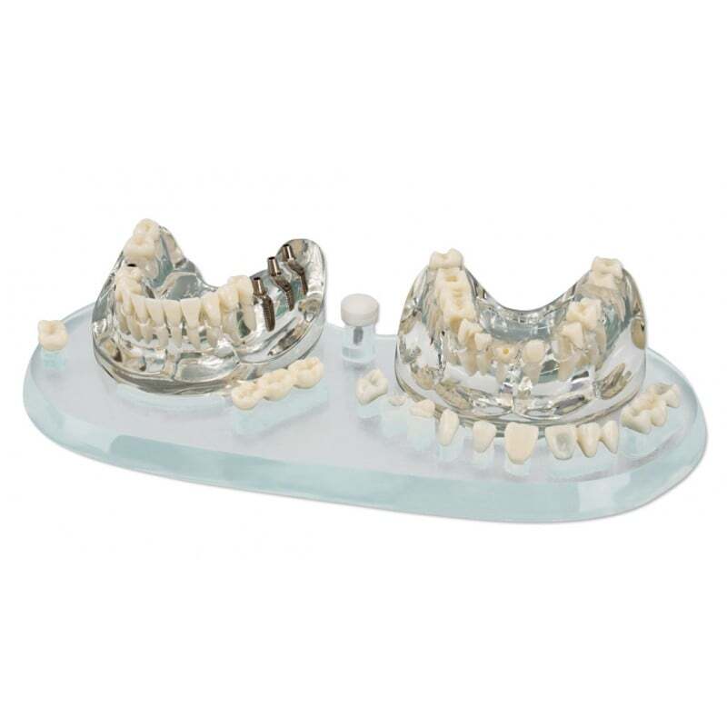 Modelo de demonstração transparente de vários trabalhos protésicos.