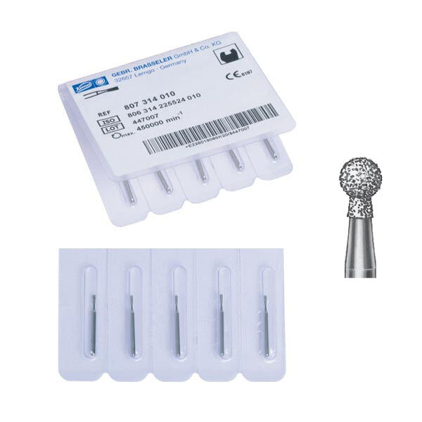 Fresas Diamante Turbina Grano Medio 802 (009-012) Redondo Cuello Recubierto 5 Ud