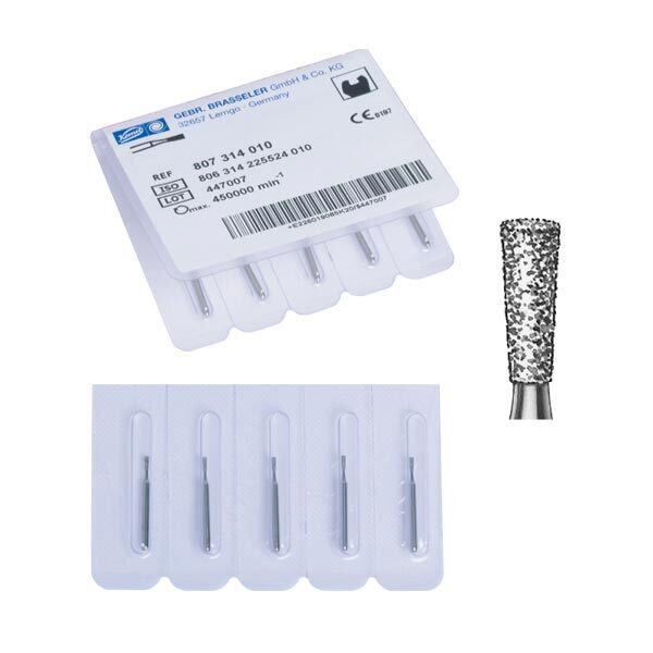 Fresas Diamante Turbina Grano Medio 807 (010-012) Cono Invertido Largo 5 Uds 12