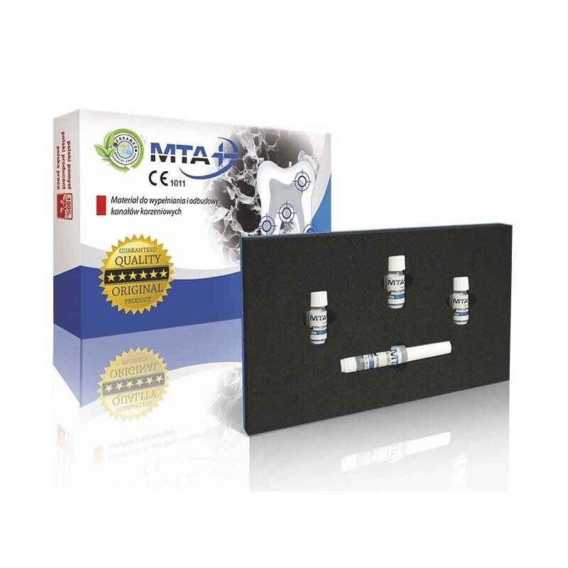 - El producto MTA + está destinado al tratamiento dental como material para el relleno y la remineralización de los conductos radiculares.