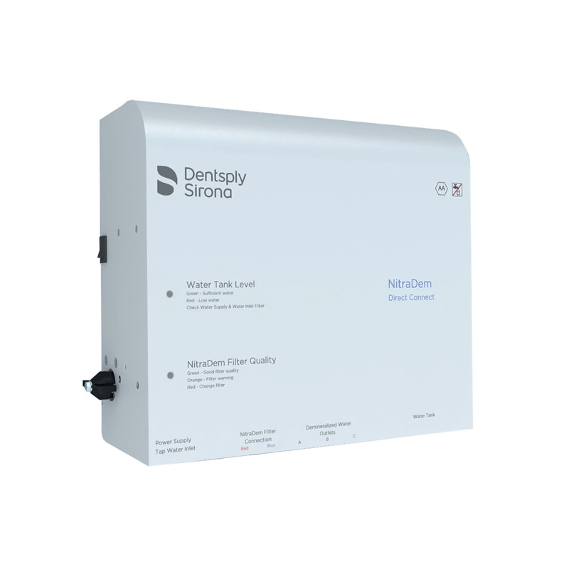 O NitraDem Direct Connect 2 está equipado com 3 saídas de água, através das quais é distribuída a água desmineralizada a uma pressão de 5-6 bar. Dependendo do tipo de autoclave, é possível conectar até 3 dispositivos