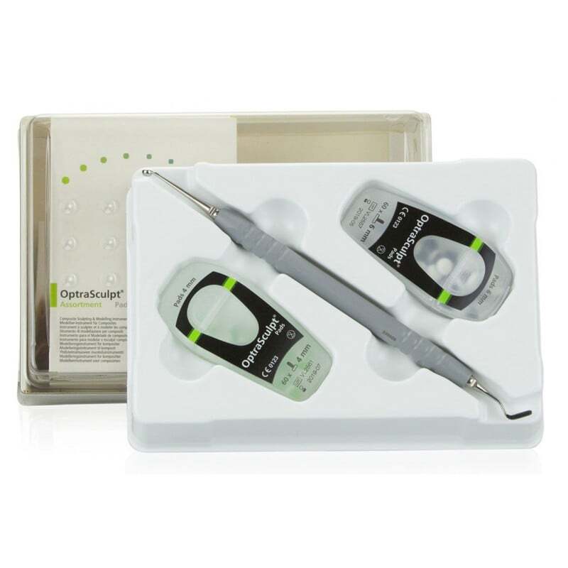 - Dois tamanhos de almofada para modelagem eficiente de revestimentos directos e restaurações de grandes superfícies das classes III e IV