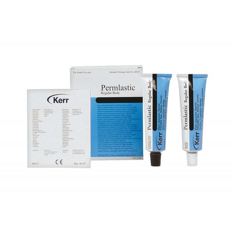 - O Regular Permlastic é recomendado para impressões dentárias parciais ou completas porque possui um alto grau de fluidez que registra os detalhes mais finos. Embora geralmente usado com uma mistura única, pode ser usado com Light-Bodied Permlastic para impressões de coroas e pontes
