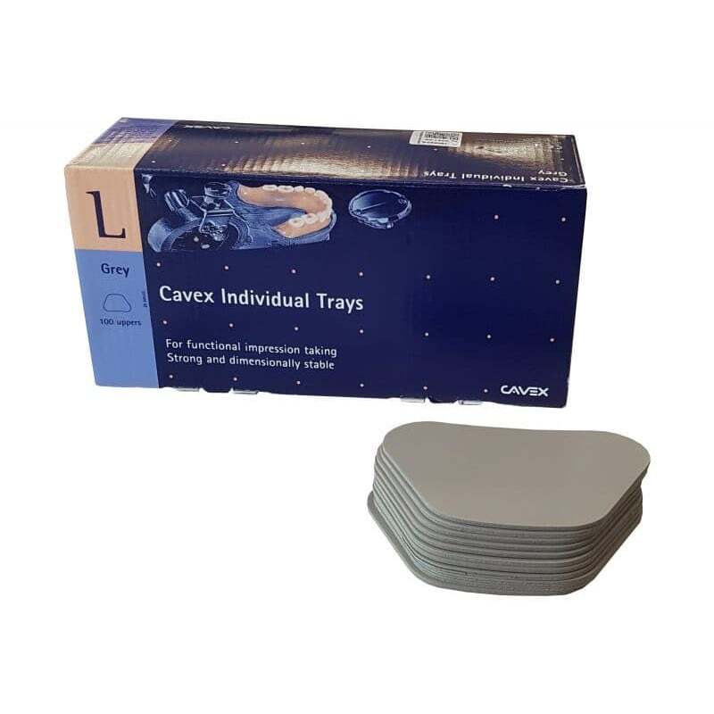 La bandeja individual es otra bandeja dental desarrollada por Cavex. La bandeja de color gris con un grosor estándar de 1,9 mm garantiza un ajuste óptimo incluso cuando la cuchara se almacena durante un período más largo. El procesamiento rápido y una relación precio/calidad favorable son las razones por las que Cavex Individual Tray ha sido popular en los laboratorios dentales de todo el mundo durante muchos años.