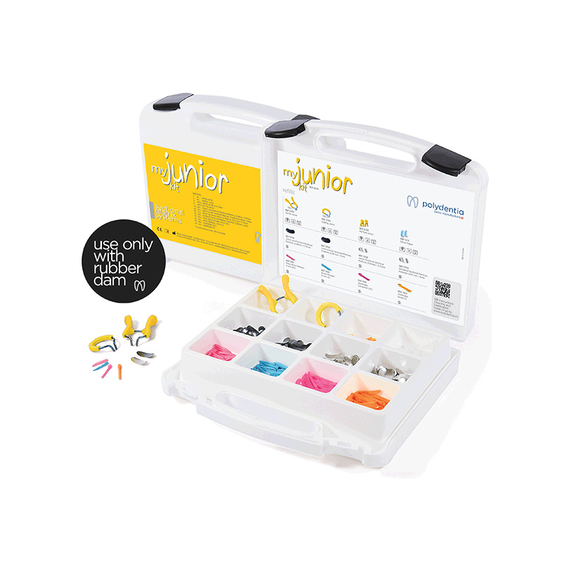 - myJunior kit es el primer sistema de matrices seccionales para odontopediatría y ha sido desarrollado especialmente para adaptarse a los dientes deciduos más pequeños y a los dientes permanentes jóvenes