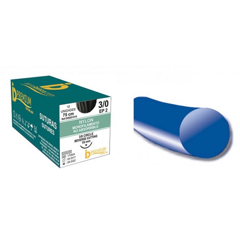 SUTURA NYLON 75 cm 12 Uds 19 mm 3/0