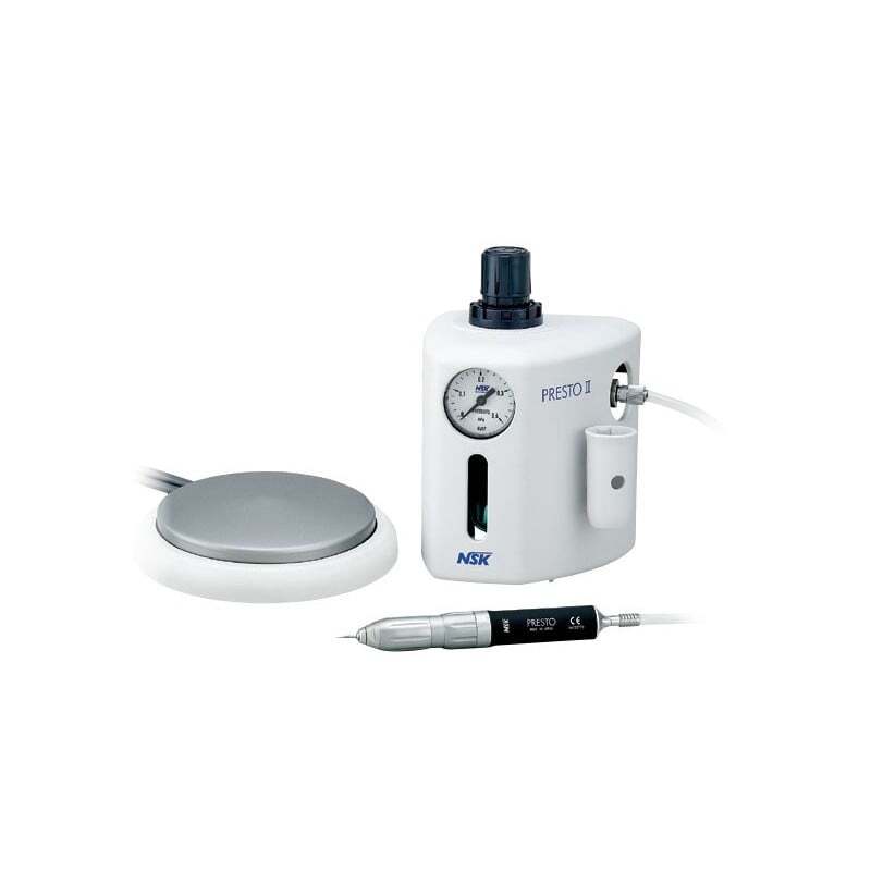 - Unidad de control PRESTO II- Pieza de mano PRESTO- Soporte para pieza de mano- Manguera para PRESTO- Pedal (AFC-40)- Manguera secundaria para PRESTO